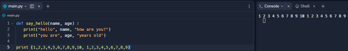 def say_hello(name, age) :
