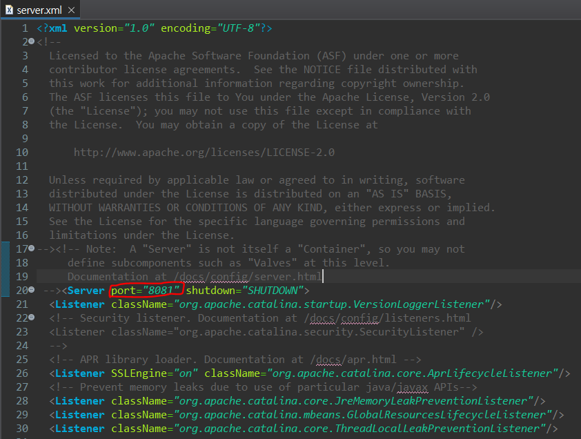 7) 톰캣 [server]의 port 확인