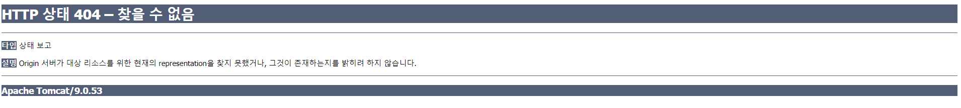 [404에러] Origin 서버가 대상 리소스를 위한 현재의 representation을 찾지 못했거나, 그것이 존재하는지를 밝히려 하지 않습니다.