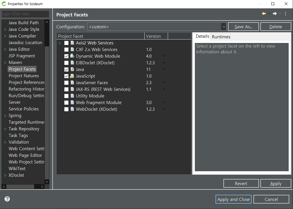 1) 해당 프로젝트 우클릭 - [properties] - [project Facets] - [Dynamic Web Module] 버전을 확인 및 변경하라고 했고,