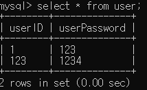 mysql에서 userID, userPassword 받는거, 예외처리 해줌