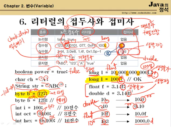 자바의 정석 ch2 (5-6) 상수와 리터럴, 리터럴 타입과 접미사 본문