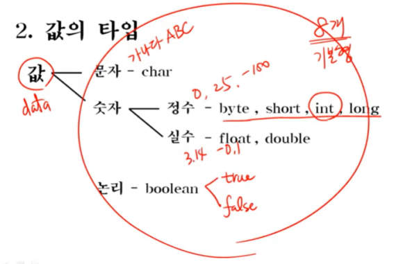 true/false, 조건식, 논리적 계산에 사용 (boolean_1byte(8bit))