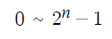 n 비트로 표현 가능한 부호없는 정수의 범위 = (0 포함하므로)