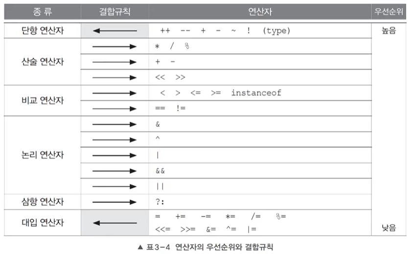 연산자의 우선순위 : 하나의 식(expression)에 연산자가 둘 이상 있을 때, 어떤 연산을 먼저 수행할지를 자동 결정하는 것.