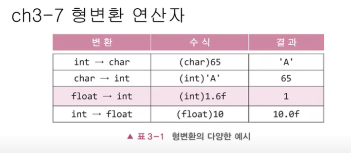형변환 : 변수 또는 상수의 타입을 다른 타입으로 변환하는 것.