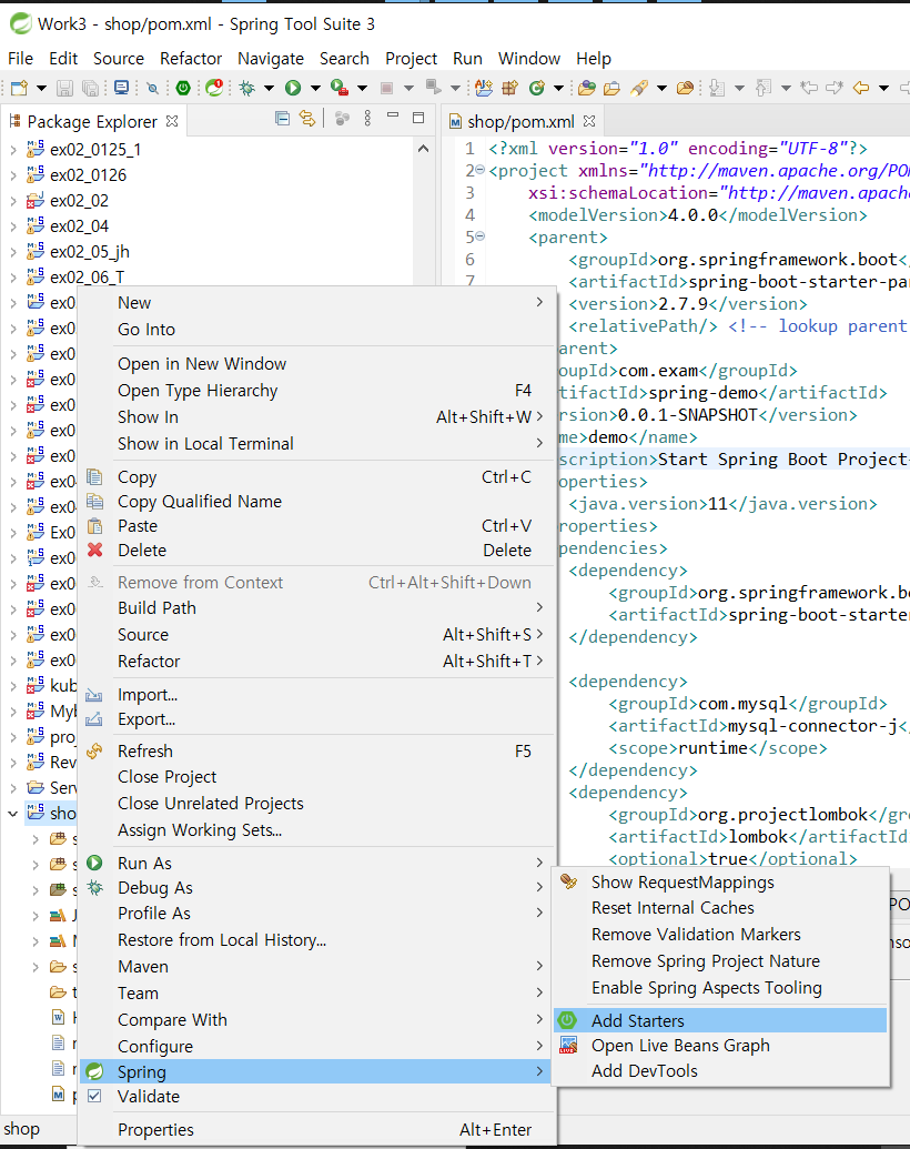 아래는 위의 의존성 주입 후 자동 생성된 라이브러리 목록 예시