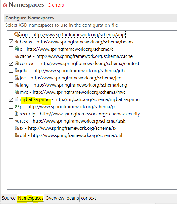 XML 작성해 사용할 때 XML파일 위치와 XML 파일에 지정하는 namespaces 속성이 중요.