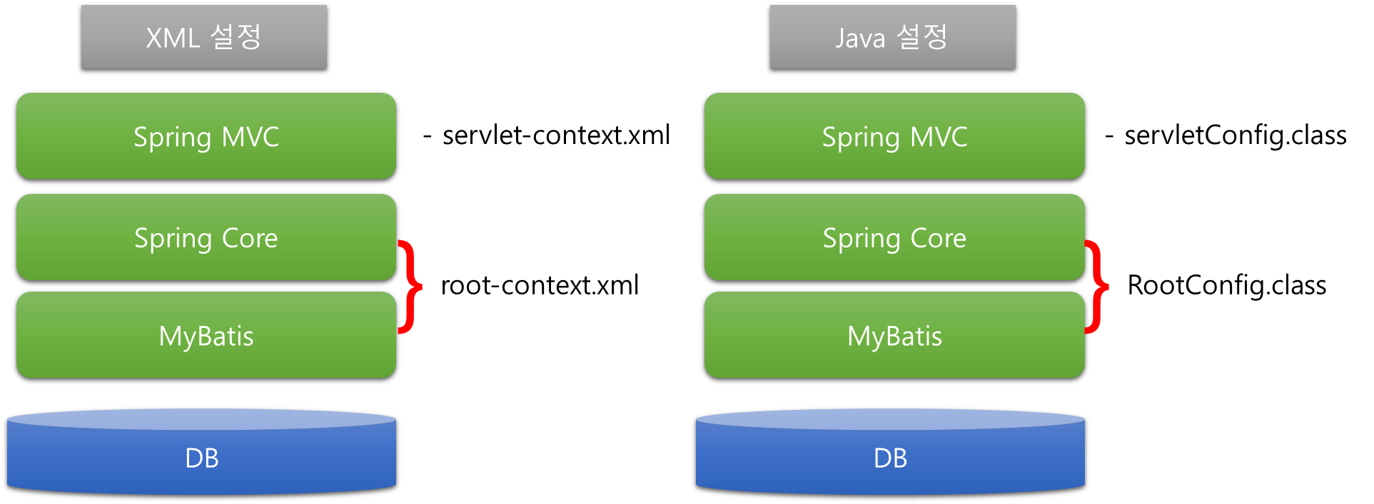 내부적으로 root-context.xml로 사용하는 일반 Java영역(POJO, Plaoin Old Java Object)과 servlet-context.xml로 설정하는 Web 관련 영역을 같이 연동해 구동