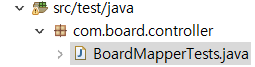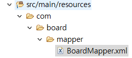 BoardMapperTests 테스트 완료 - src/main/resources 내에 패키지와 동일한 com/board/mapper 단계 폴더 생성 후 XML 파일 작성. (폴더 하나씩 생성할 것!)