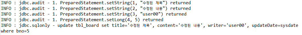 SQL에서 주의 깊게 봐야 하는 부분은 update 칼럼이 최종 수정 시간을 의미하는 칼럼이므로 현재 시간으로 변경해주고 있다는 것, regdate 칼럼은 최초 생성시간이므로 건드리지 않는다.