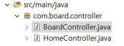 BoardController가 속한 com.board.controller 패키지는 servlet-context.xml에 기본으로 설정되어 있으므로 별도의 설정 필요하지 않음. (java 설정 이용 시 @ComponentScan 이용)