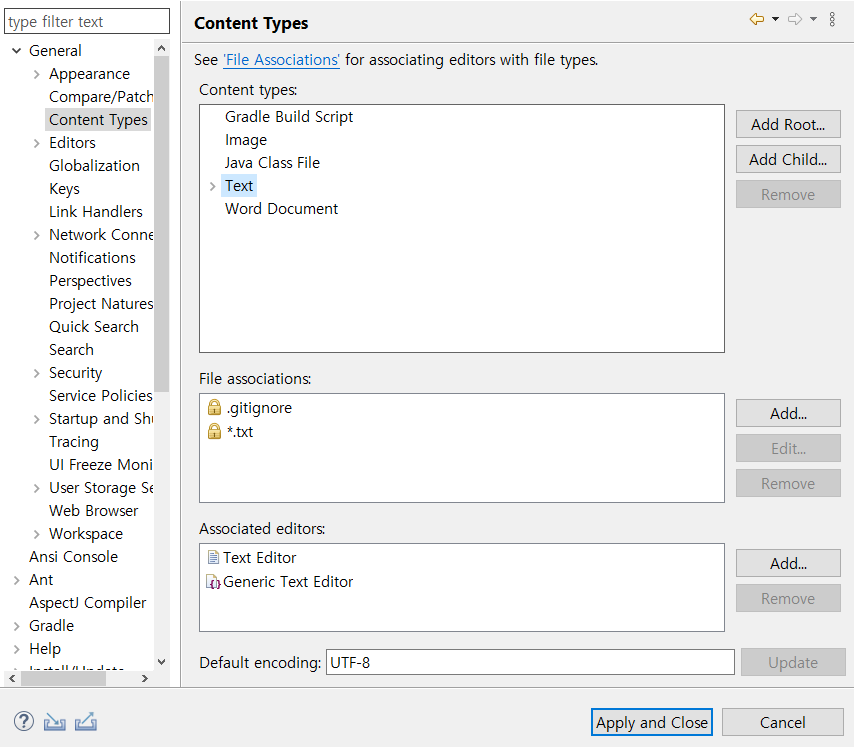 4. Window → preferences → Content Types → Java Class File, Text 변경