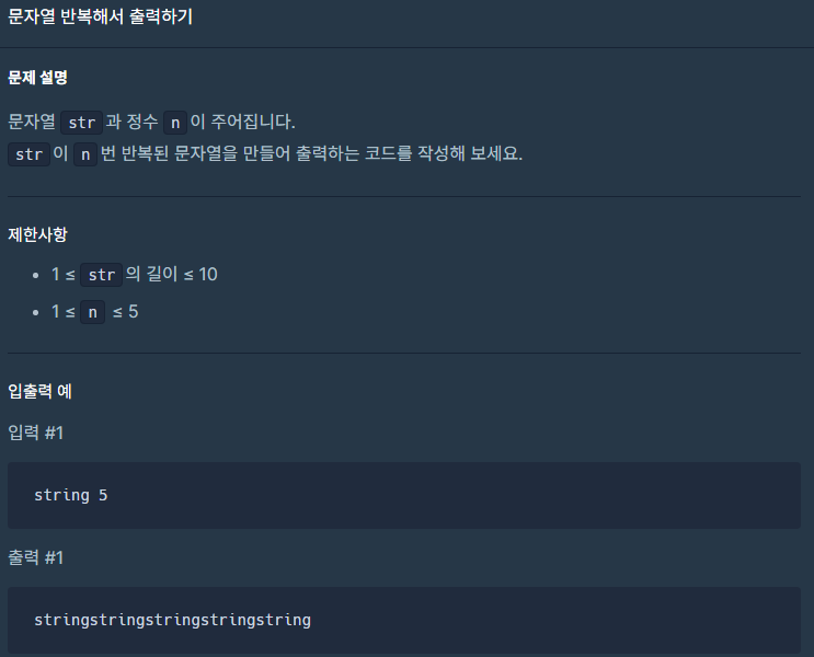 프로그래머스 - (lv.0)문자열 반복해서 출력하기 본문