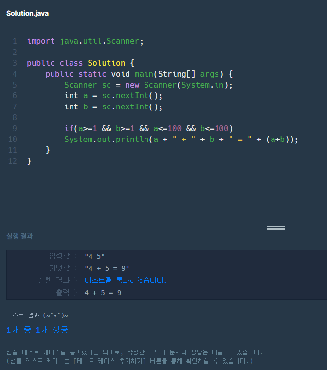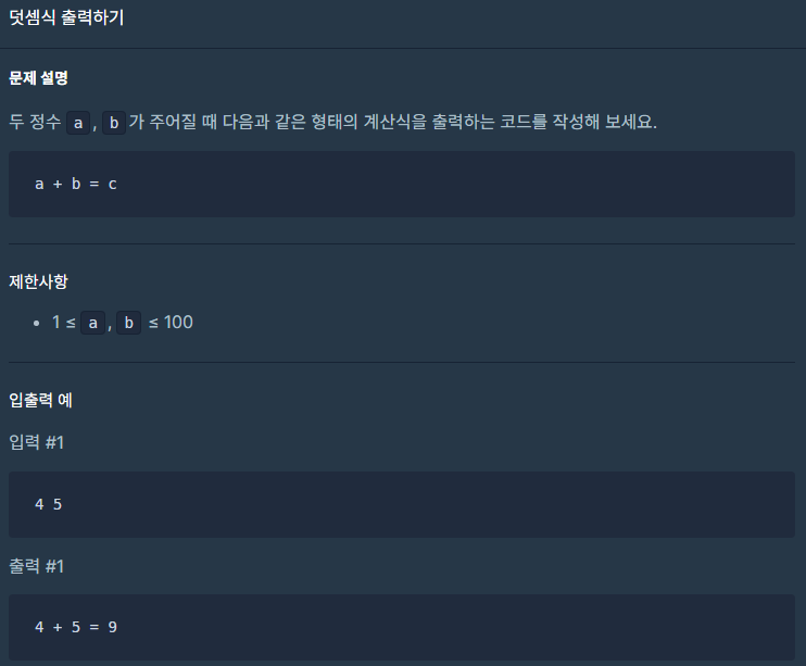 프로그래머스 - (lv.0) 덧셈식 출력하기 본문